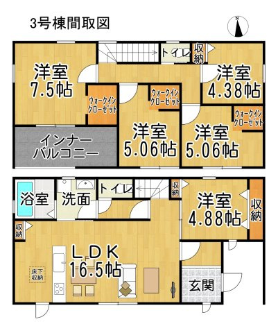 【外観】3号棟:126坪の広々とした敷地は広いお庭と3台分の駐車スペース!
