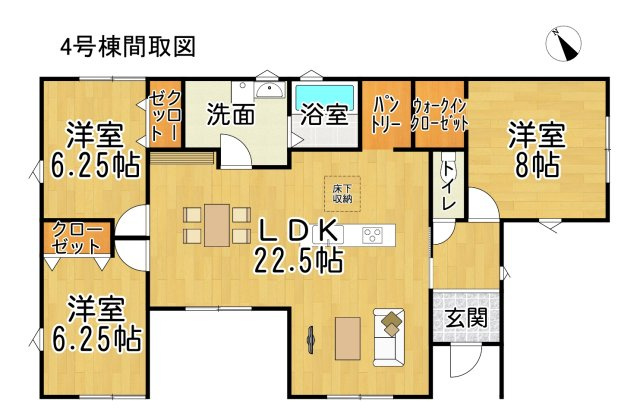【外観】4号棟:室内ご覧いただけます!平屋3LDK!22.5帖のリビング!素敵なアイランドキッチン♪